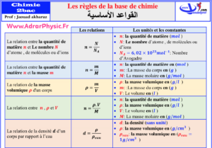 Les règles de la base de chimie pour la deuxième année baccalauréat, réalisé par prof : Jaouad akhraz.